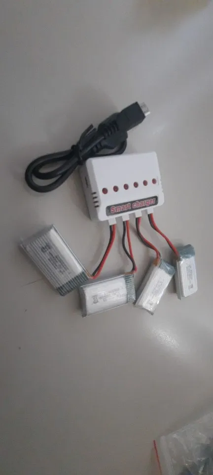I ordered a pack of six batteries and the charger. Two of the batteries were broken on arrival, four of them are working fine so far. I got in touch with the seller and described the issue per their request: One battery, when connected to the charger, never finishes charging. The red light on the charger stays on for hours, while all red lights with working batteries turn off after some time. I tried different charger ports - no change. The other battery behaves normally in the charger, but when I put it in the drone, the drone does not even turn the LEDs on, as if the battery was completely depleted. They never got back to me. I will not order from this seller again.