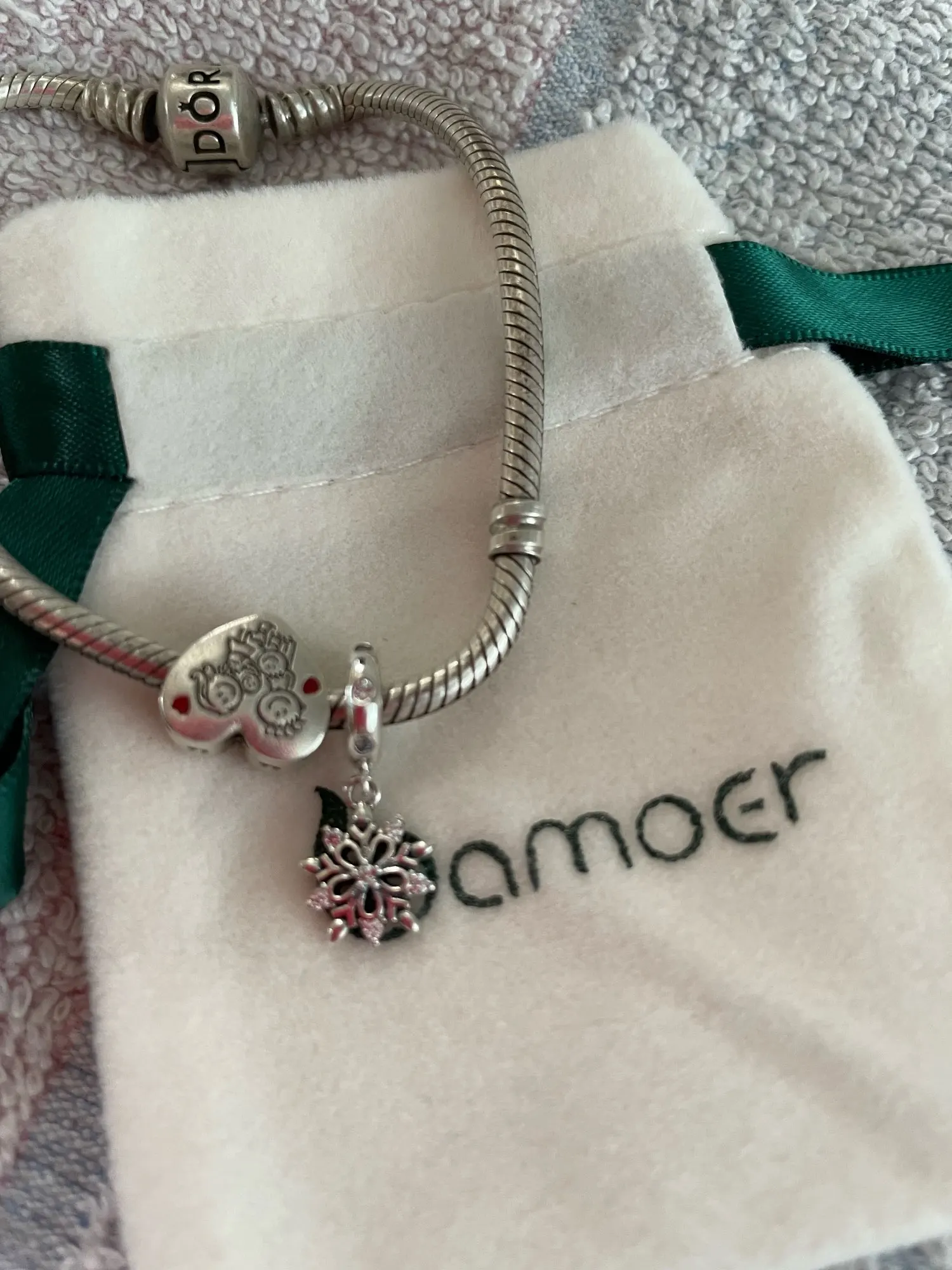 The bracelet pendant look very nice, I don't see any decay, all stones on place, leaves on tree nice made. I found silver hallmark as it was declared as real silver- About that and quality I will see more in time. I had bigger order and seller gave me one “gold” colored earings and two velvet bags as a gift (last picture).