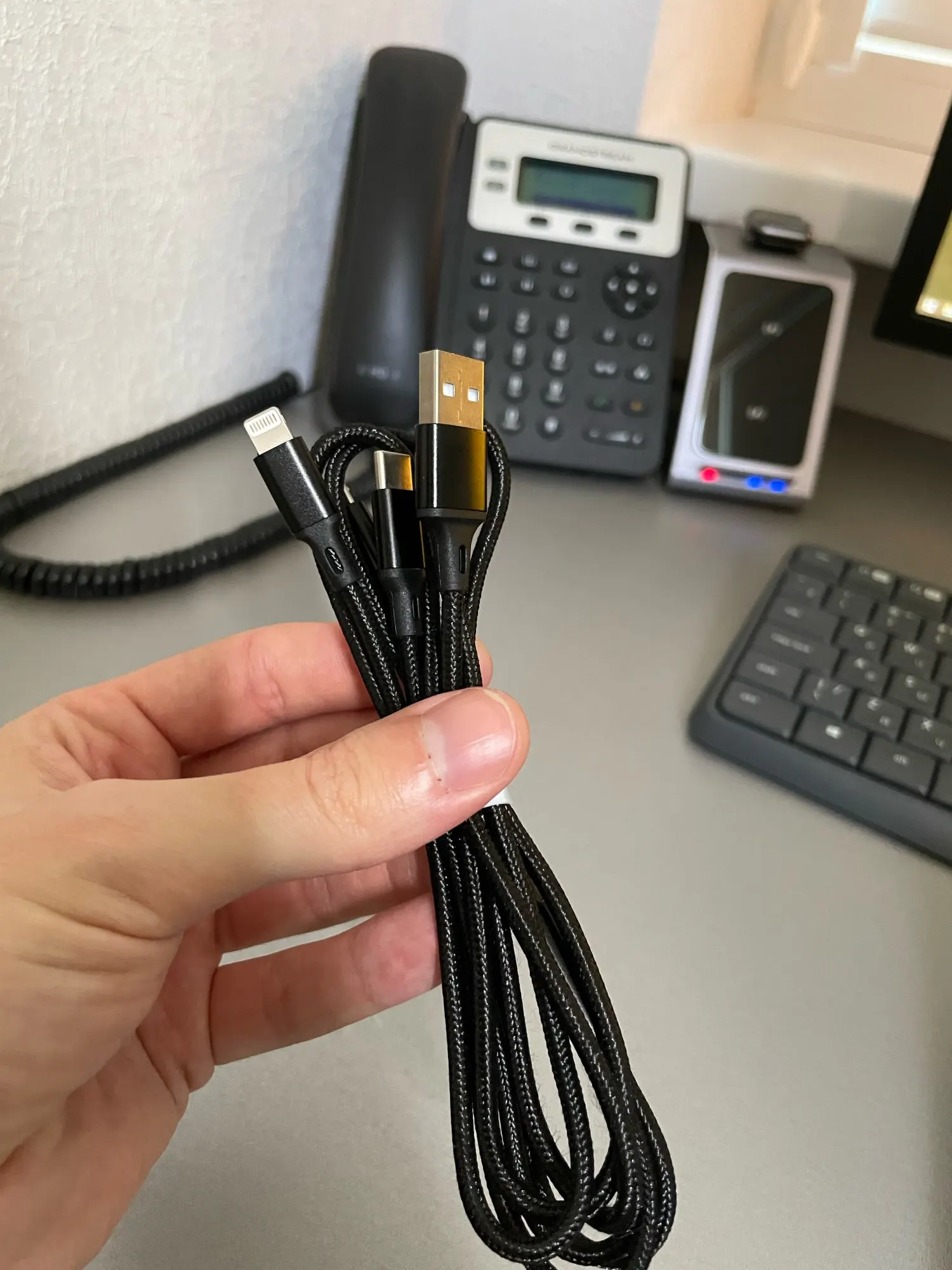 3 in 1 Charger Cable 4ft/1.2m with 8PIN Micro USB Type C Port Connector Universal(Charging Only)