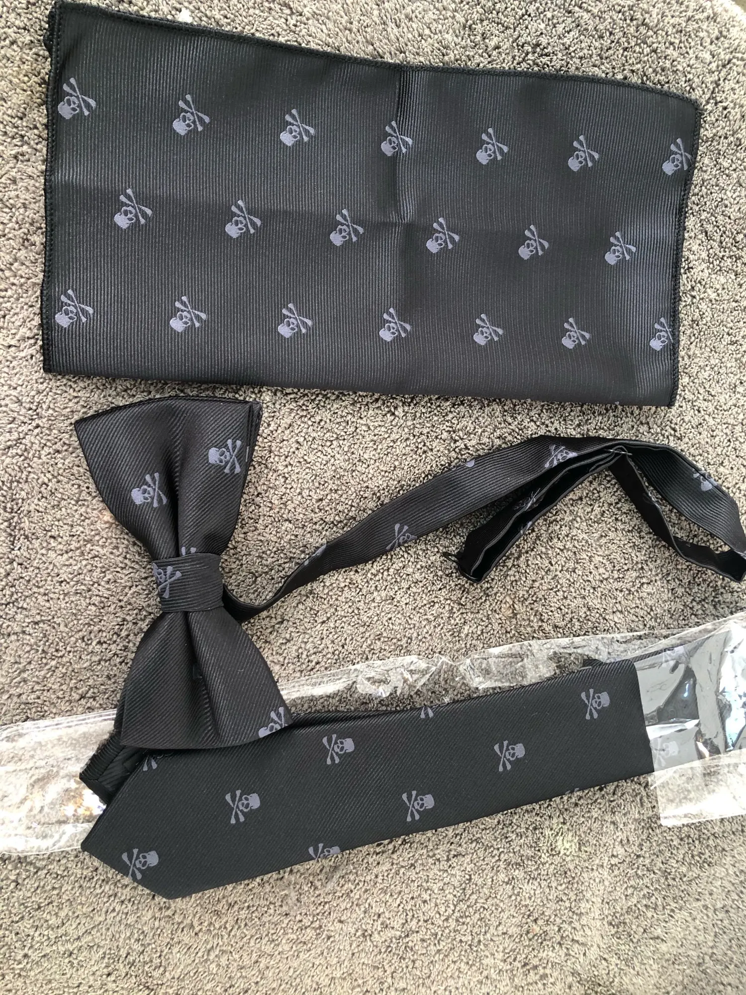 3 PCS neck tie Set Men Bow Tie and cravat Bowtie Slim Necktie Skeleton Man ties for men 1200 needle Fashion gravata dress