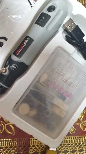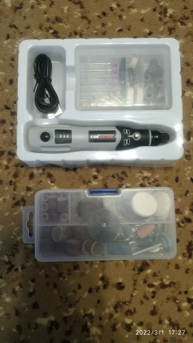 The extra box of the tools had a crack in it, but that's most likely the fault of the post office. The product is great, and it arrived quickly. It's not very powerful, but I bought it for small cleaning/cutting jobs, and it's perfectly fine for that. (it definitely won't cause any body harm when not attaching a cutting/drilling tool, that's actually a positive thing for me.) Overall: very satisfied, thank you.