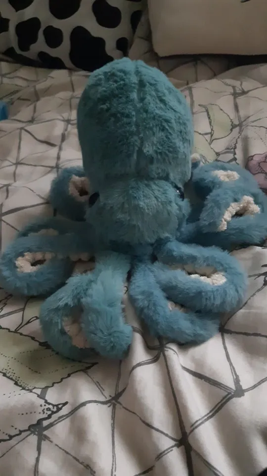 its a very very soft plushie squid!! i bought the 45cm one and he fits on your head!! i named my squid Slushy!! im very happy with him