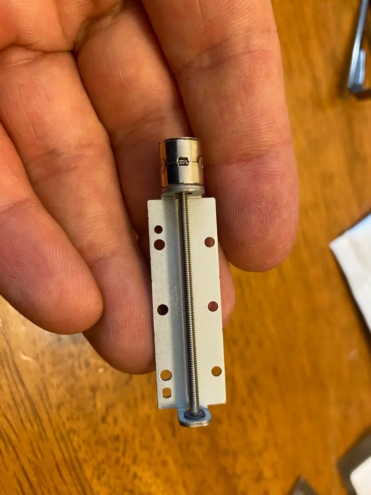 Works well Good seller Great Delivery. Its a pitty it doesn't have a Nut or small Bracket to run up and down the thread.