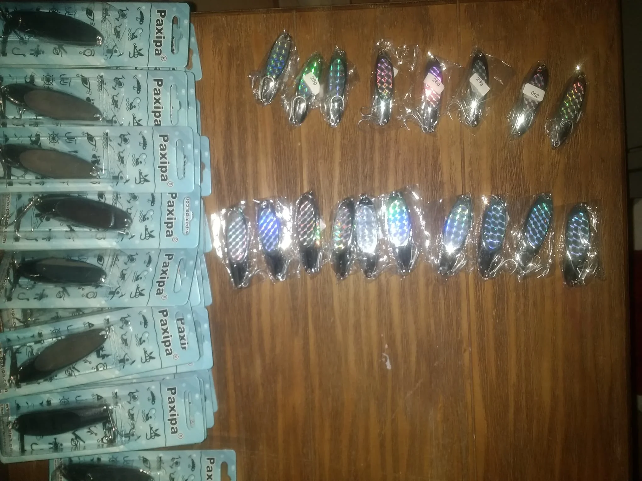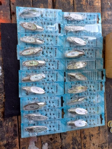 30pcs 56g / 2oz Metal Spoon Fishing Lure with iridescent Sticker and Silvery Thick Treble hook