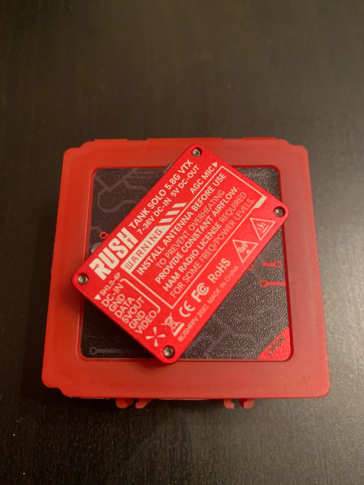 37x24x6.7mm RUSH TANK SOLO 5.8G 48CH PitMode 1.6W Adjustable VTX 2-6S Built-in Microphone CNC Cooling Shell for FPV Long Range