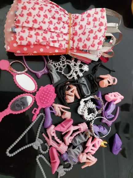 38 Item/Set Doll Accessories=10 Pcs Doll Clothes Dress+4 Glasses+5 Plastic Necklace +2 Hanger+10 Pairs Shoes for Barbie doll