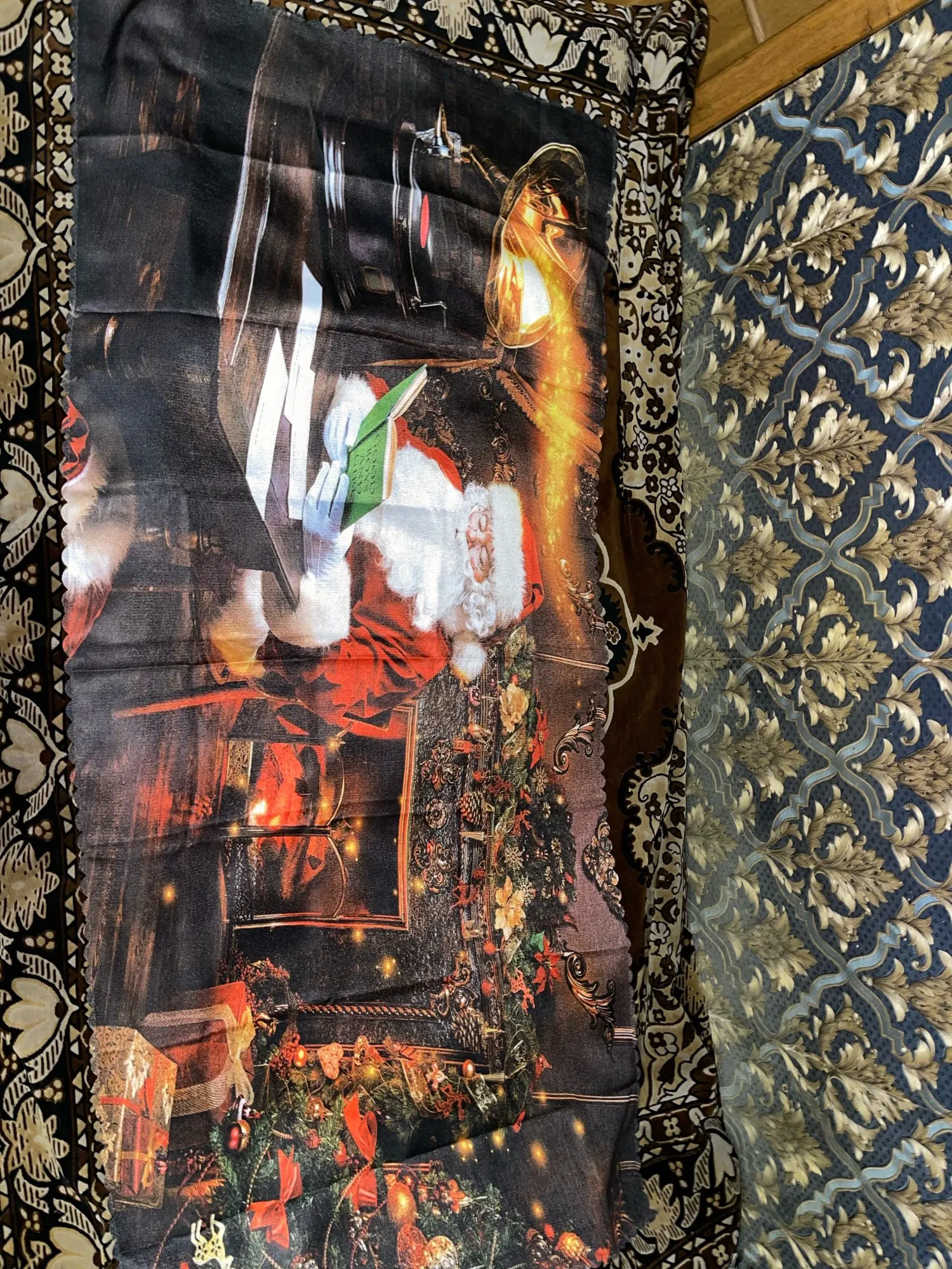 3d Christmas Tablecloth Santa Claus and Gifts Pattern Rectangular/Round Table Cloth Thicken Cotton Cover Towel