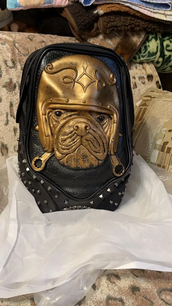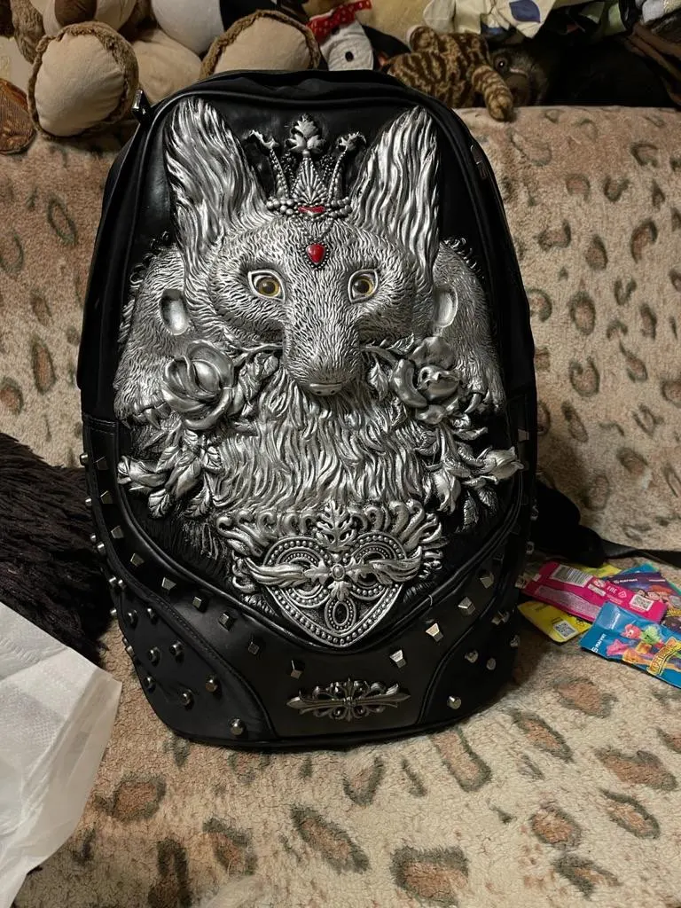 3D Embossed Men Backpack Travel Punk Rock Backpack Grimace Pattern Owl Skull Fox Lion Pattern Backpack Funny School Shoulder Bag
