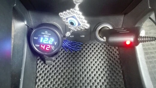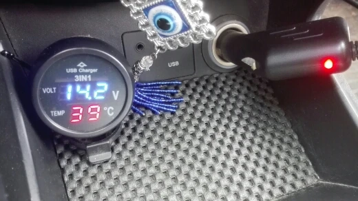 3in1 Auto Digital LED Thermometer USB Car Charger Cigarette Voltmeter Meter 12V/24V