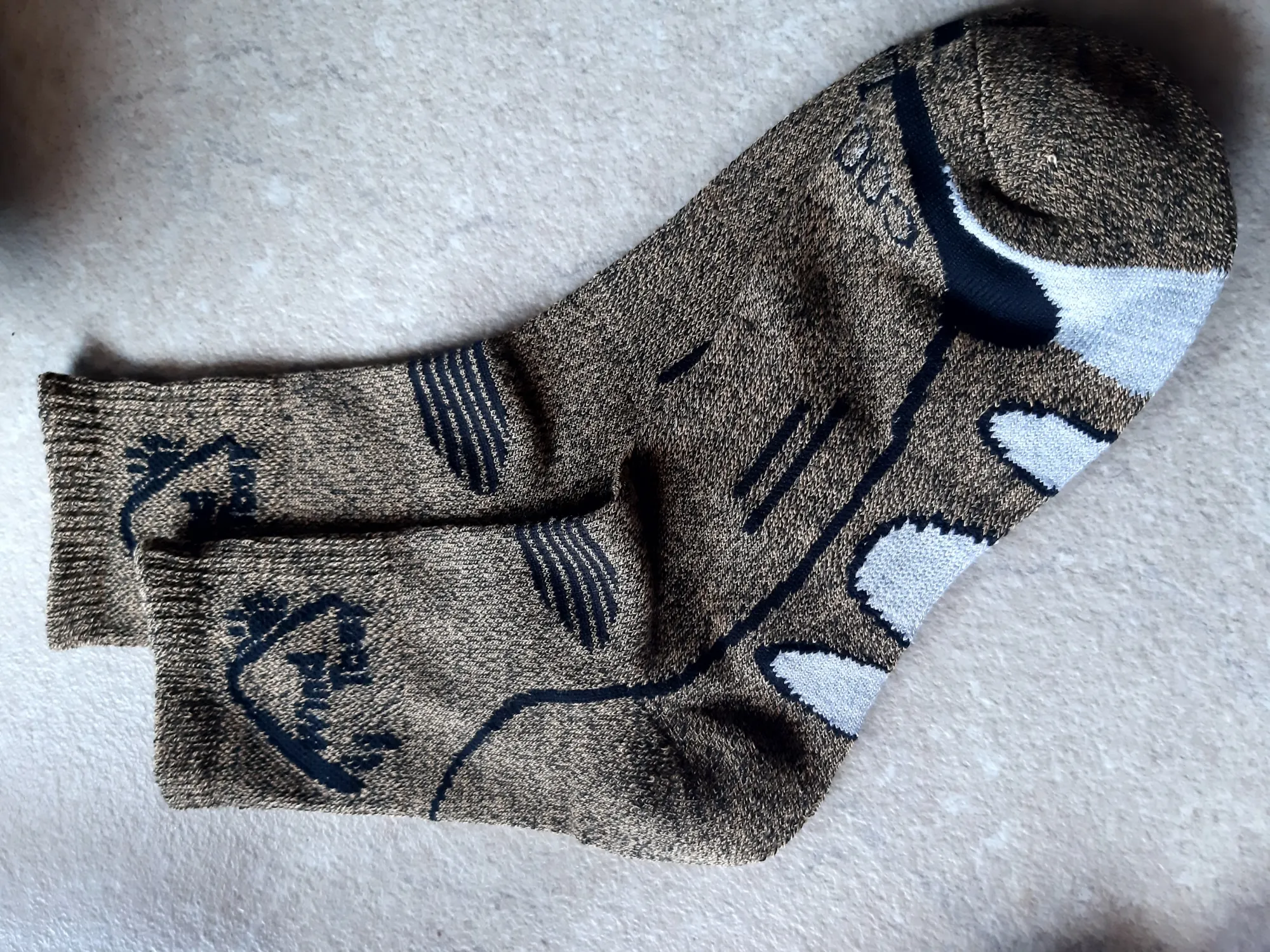 Gray, white, gold coolmax socks