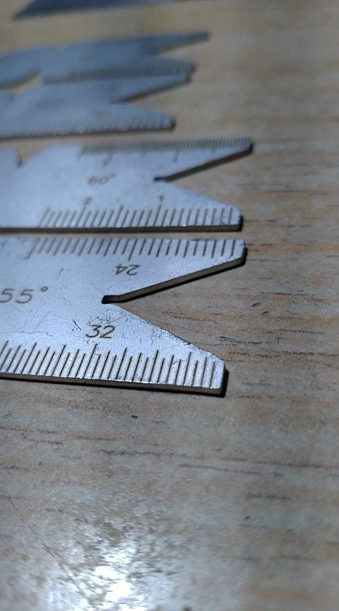 The stencils are made of non-magnetic material, most likely of aluminum alloy, but are quite rigid- no objection. But "accuracy", as it may be called, madness 1-2 degrees- is unacceptable. Some angles, such as large interiors, are more accurate. I will measure in the near future. But most likely that I will start to make a claim, not for the whole amount, but 50-70%. I do not recommend buying. In photography 1-2 degrees is hard to follow, but believe me there are two 60 degree samples, but putting the outer angle to the other inner to the light has an irregular gap.