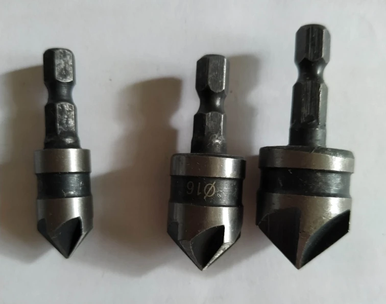 3pcs/set 90 Degree 1/4 Hex Shank Drill Bit 5 Flute 12mm 16mm 19mm Woodworking Chamfer Counter Sink Chamfering Debur Countersink