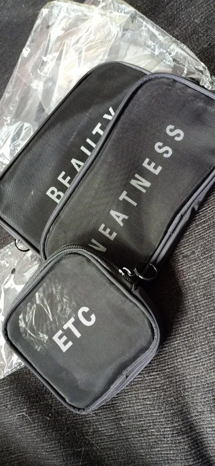 Excelent product, fast delivery. Not waterproof, the material is like a very fine plastic mesh. The medium and small bags are slim. Same as picture.