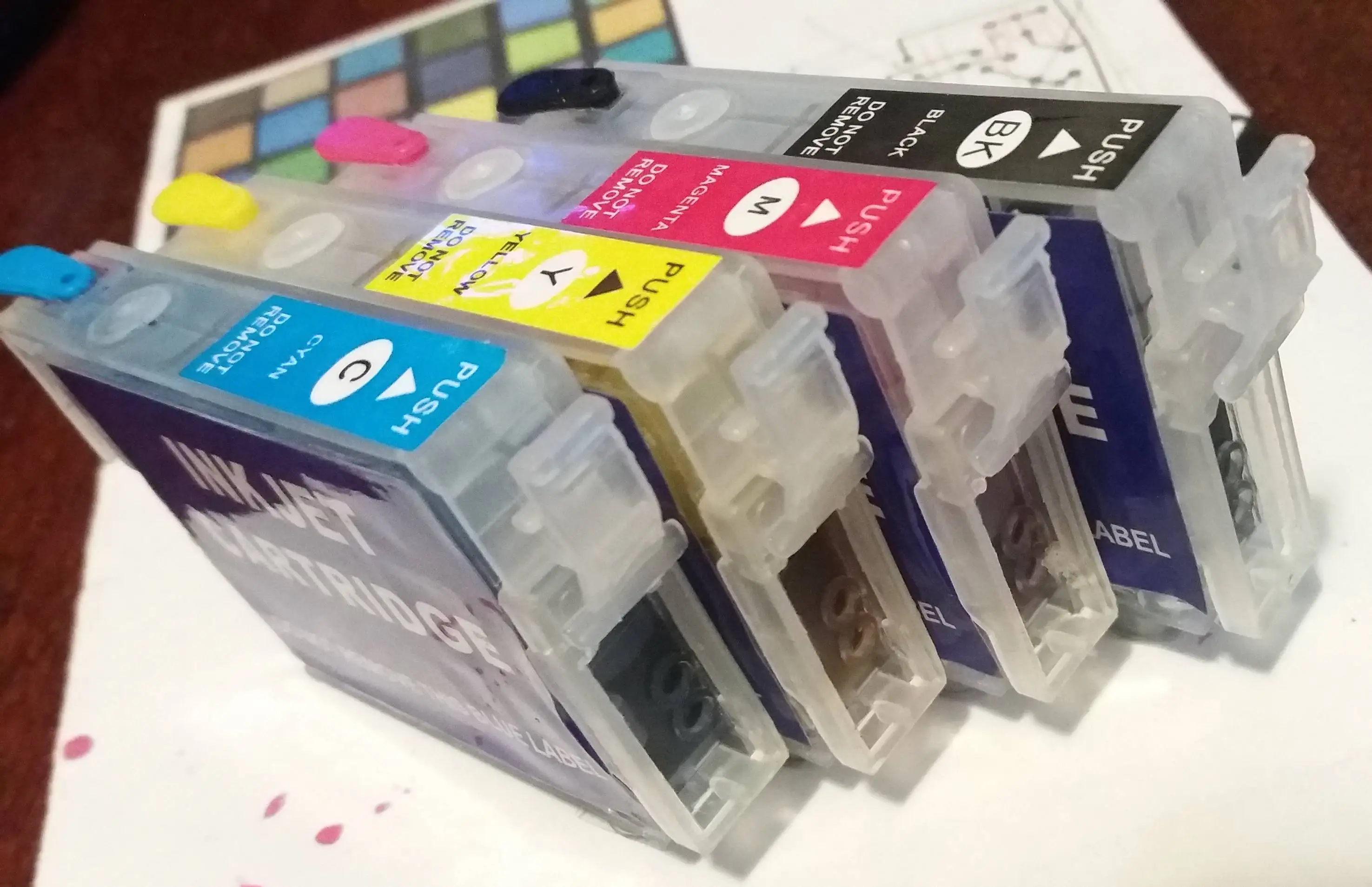 Arrived in 15 days from China to France. First day I thought the items were defective. Very bad print. After 24 hours the ink went to the bottom of the cartridge and no more problem. Good print. Refill and wait 24 hours with air plug open before to put the cartridge in the printer