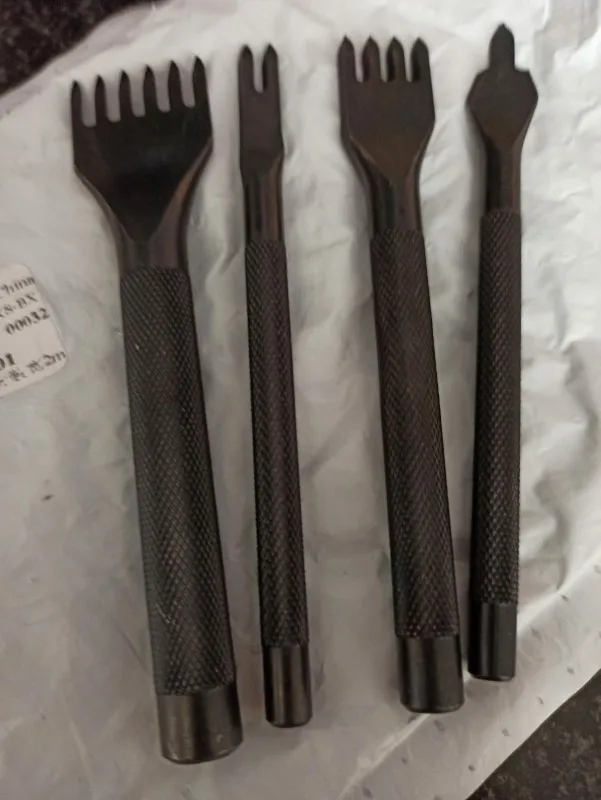 4 Pcs Leather Craft Tools Black Steel Leather Hole Punches 1 2 4 6 Prong Diamond Point Chisel DIY Leathercraft Tools