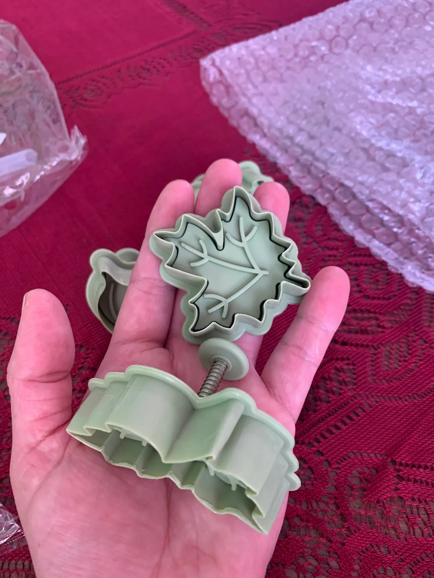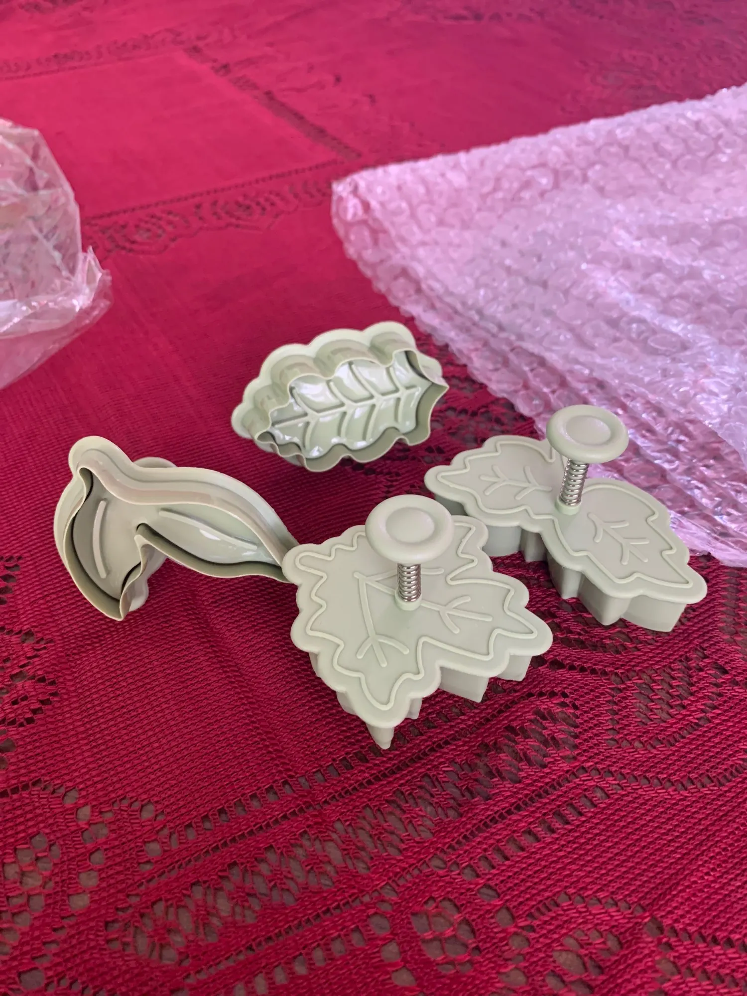 4 Pcs/set 4 Kinds Of Leaf Shape Plastic Cookie Cutters Cake Biscuit Mold Spring Plunger Baking Tool Kitchen Accessories