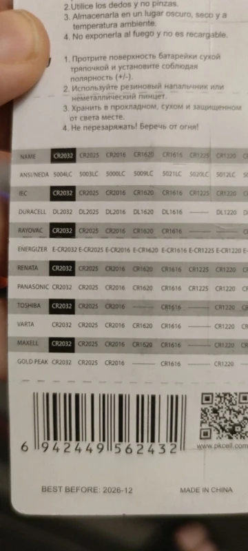 BR2032, CR2332, BR2332, DL2032, SB-T15, 2032, EA2032C