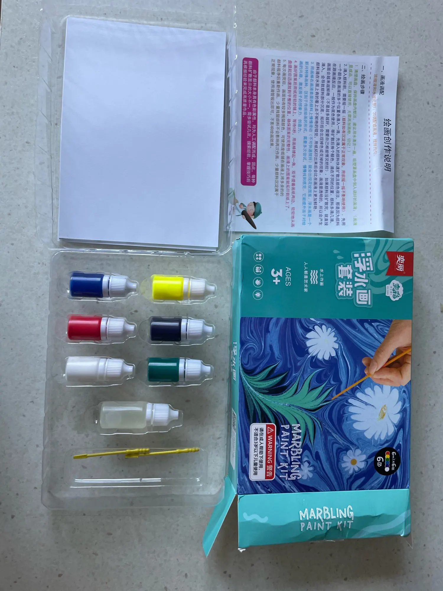 46ml Kids Water-based art paint set Marbling Painting Kit DIY Painting on Water Creative Art Set of 6 Colors acrylic paint