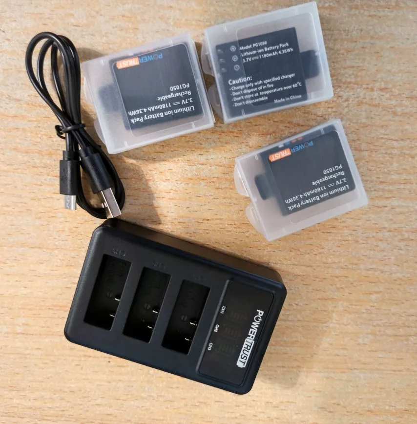 4Pcs 1180mAh PG1050 Battery +LED 3Slots USB Charger For SJCAM SJ4000 M10 SJ5000 SJ5000X For EKEN H9 H9R H8R H8 GIT PG900