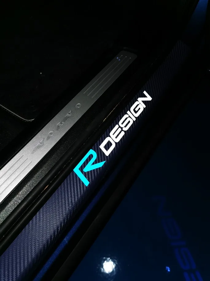4Pcs Car Styling R Design Emblem Carbon Fiber Door Sill Stickers For Volvo Rdesign XC90 S60 XC60 V70 S80 S40 V50 V40 V60 C30 S70
