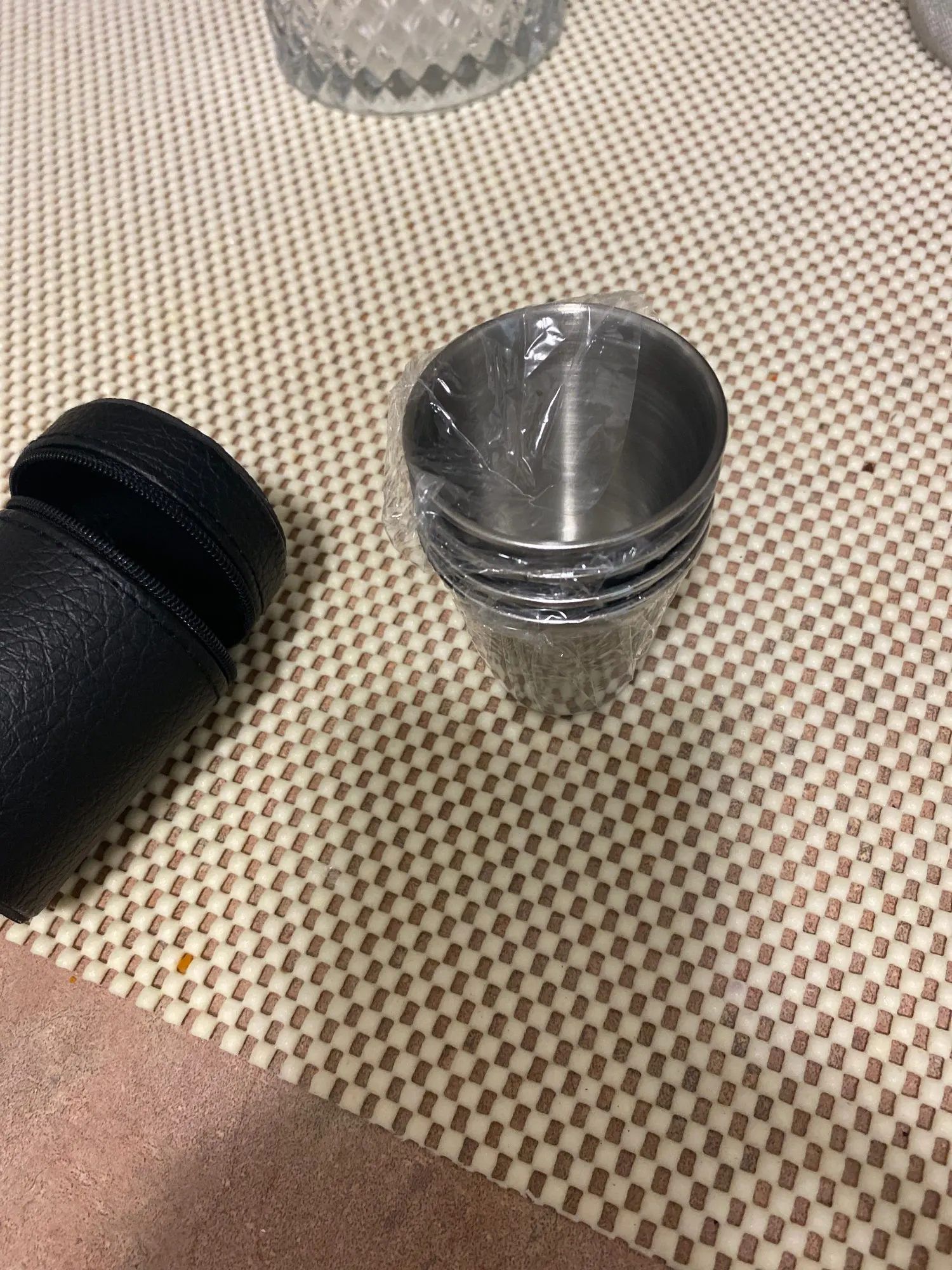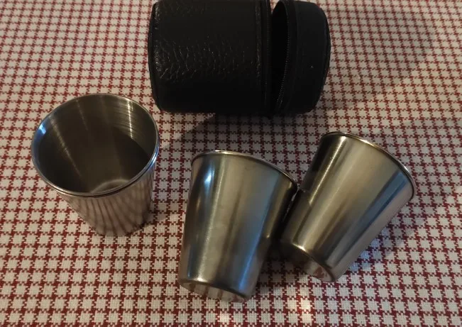 4Pcs Cups + 1 Leather box Mini Stainless Steel Wine Alcohol Faux Leather box Travel Cup Hip Flask Travel Camping Accessories