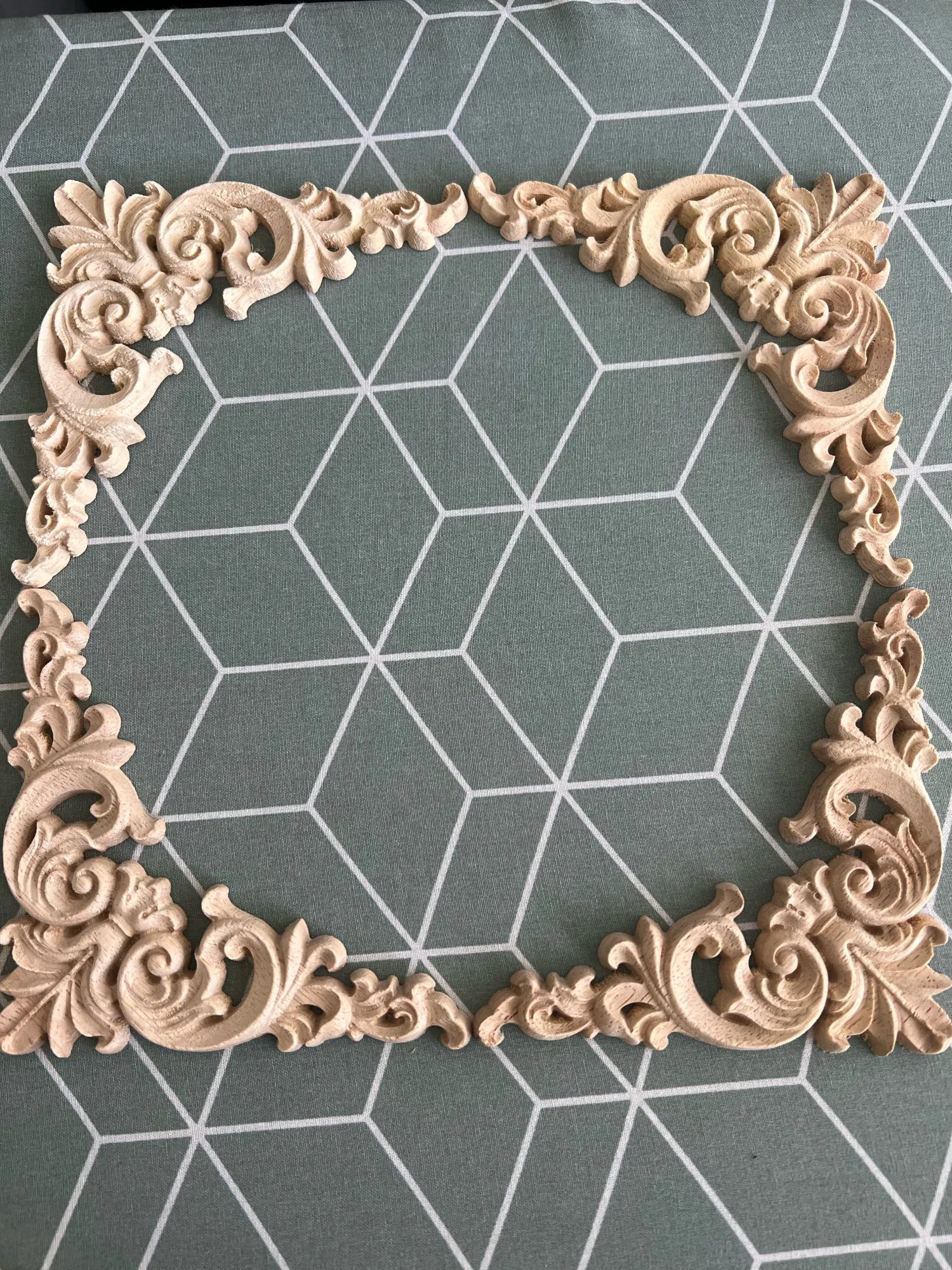 4pcs/set Wood Carved Corner Onlay Applique Unpainted Frame Cupboard Cabinet Decal For Home Furniture Decoration 12x12cm