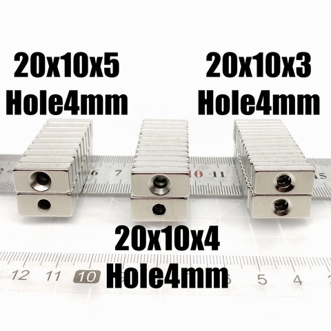 5~200pcs 20x10x3 20x10x4 20x10x5 mm Hole 4mm N35 Super Strong Block Countersunk Magnets Rare Earth Permanent Neodymium Magnet