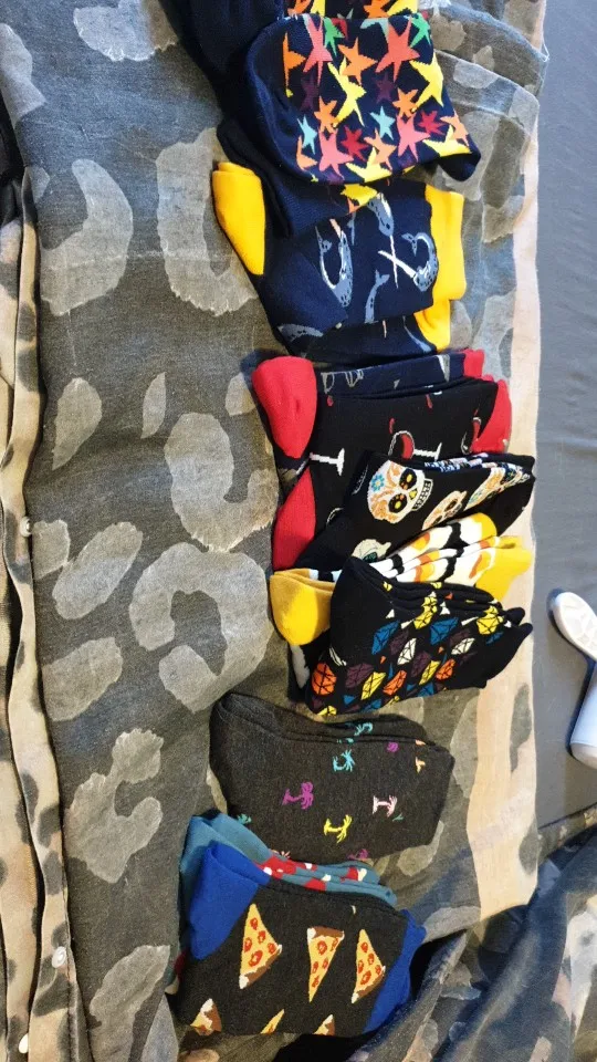 5 Pairs/lot Men's Funny Colorful Combed Cotton Happy Socks Multi Pattern Amimal Stripe Cartoon Dot Novelty Skateboard Art Socks