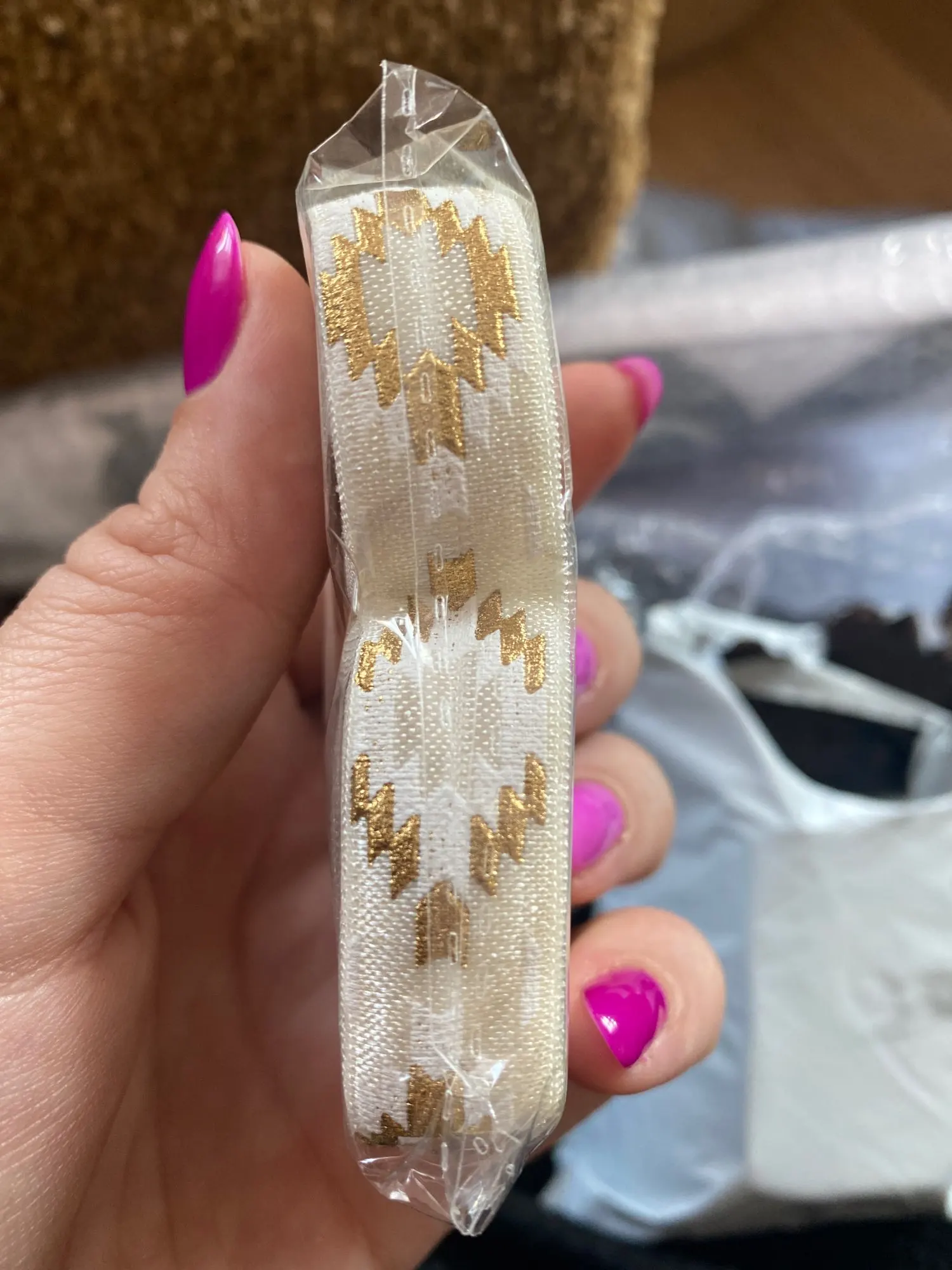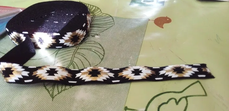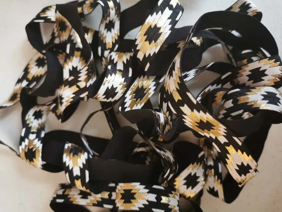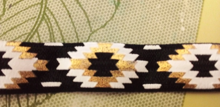5 Yards 5/8 Black Gold Foil Aztec Printed FOE Elastic Ribbon, DIY Hair Ties, Elastic, Elastic by the yard Diy Headband Elastic