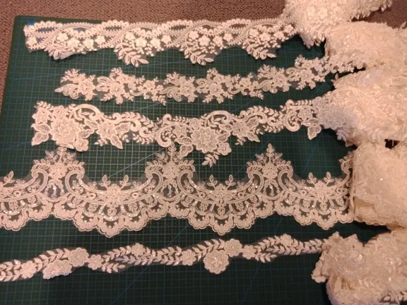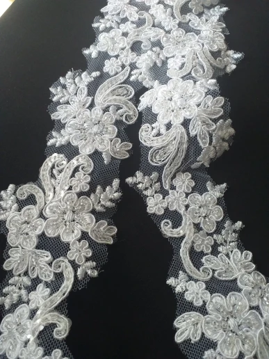 5 Yards/lot beading lace trim Ivory lace 5CM narrow lace trimming Pure white lace, Black lace with beads sequins