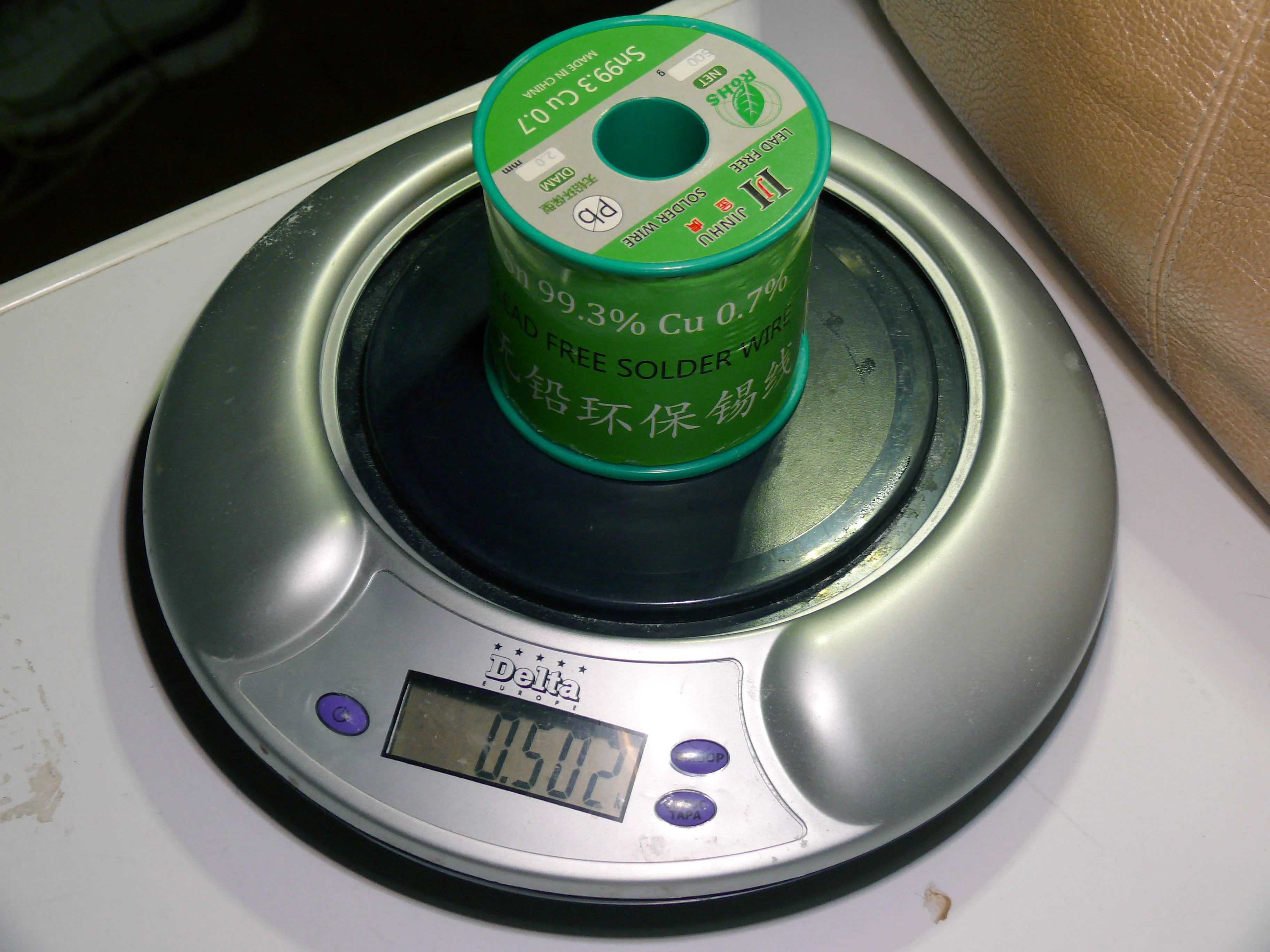 505gr. it take 260 to 360 degrees to melt well. the internal flux is not as good as other fluxes. You must have good flux.