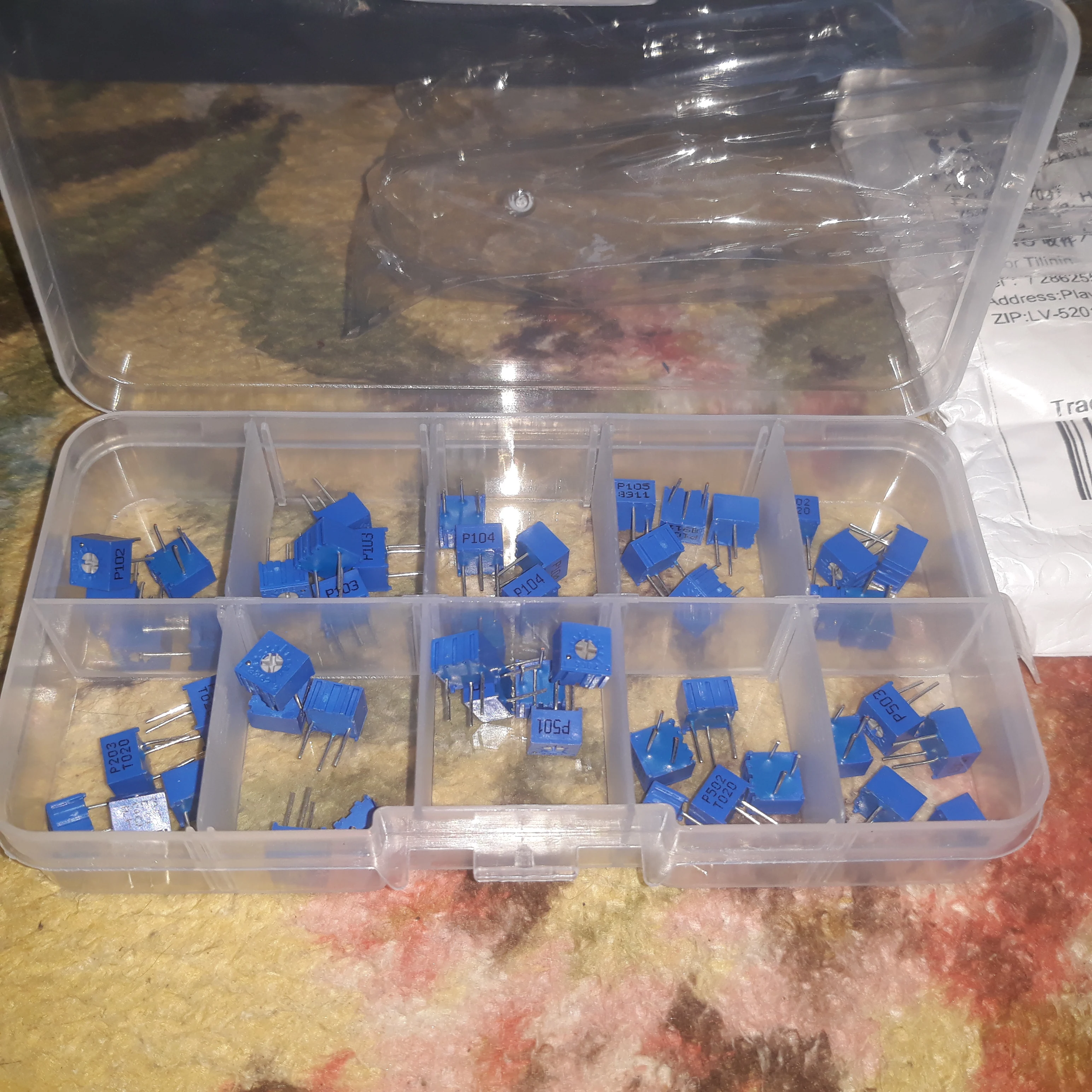 Fully corresponds to the description. Delivered to Moscow in 18 days in consolidated parcel. Well balanced set of trimming potentiometers. As expected. But 500k is not included in the nominal values set. Maybe it is not so critical for prototyping purposes. P-type leads style just exactly fits 0.1-inch holes of breadboard. Thanks to the seller!