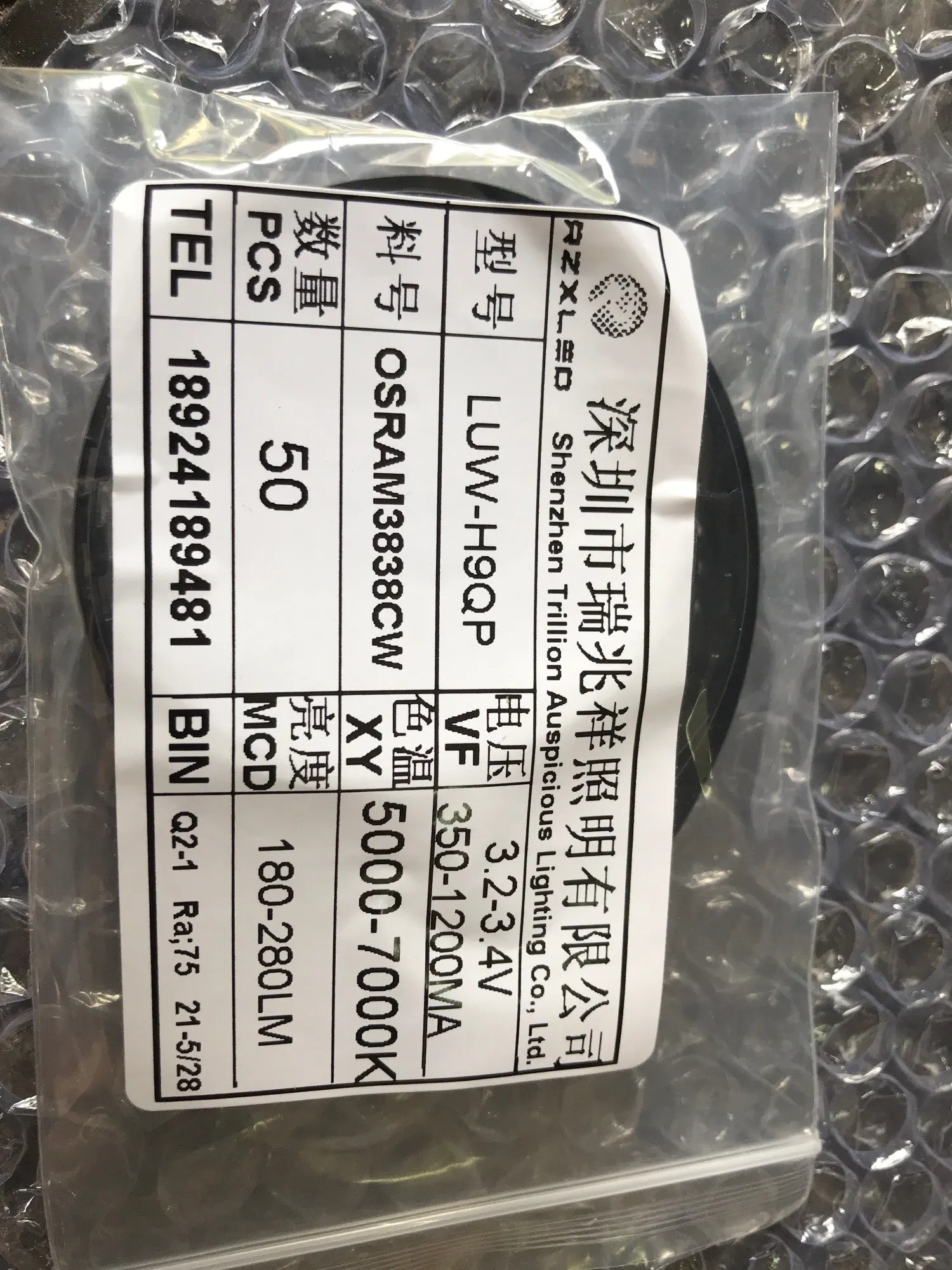 50PCS/Lot OSLON Black Flat LUW HWQP H9QP-5M8M-HNJN-1 White 3W Diode For Headlamps LED Laser Night Vision