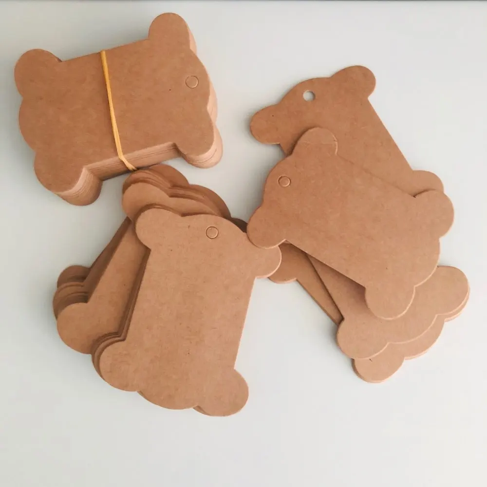 50pcs New 6.2x10.5cm Kraft Blank Bone Shape Packaging Hang Tags Wedding/Birthday Party Candy Boxes Price Tags Labels