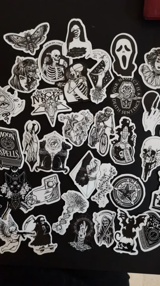 50pcs/Pack Black White Gothic Horror Punk Rock Graffiti Stickers Car Motorcycle Luggage Guitar Skateboard Toy Vsco Decal Sticker