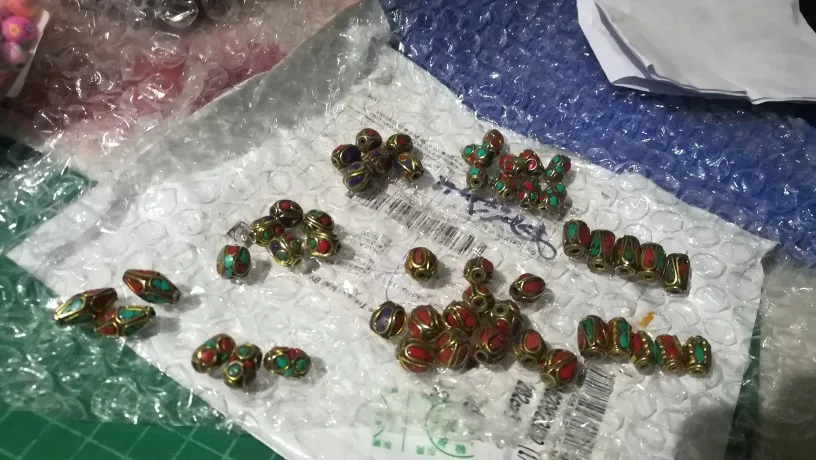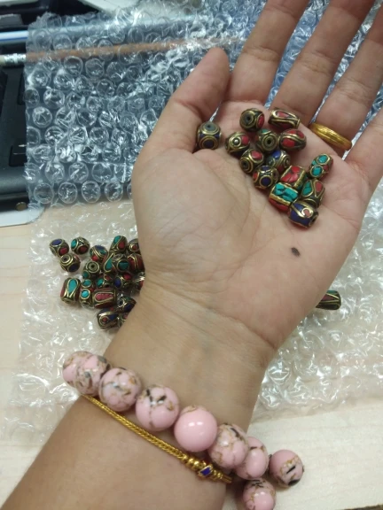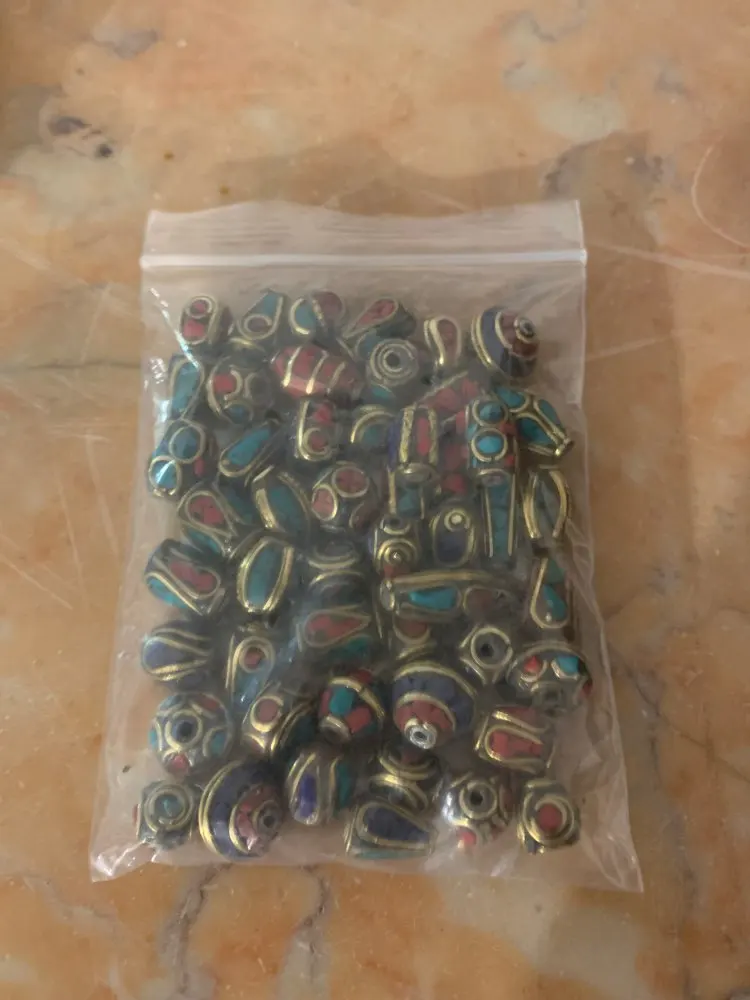 50pcs Retro Nepal Beads Handmade Red Coral Tibetan Bead Antique Golden For Jewelry Making DIY Bracelets 8~25x8~13mm Hole 1~1.5mm