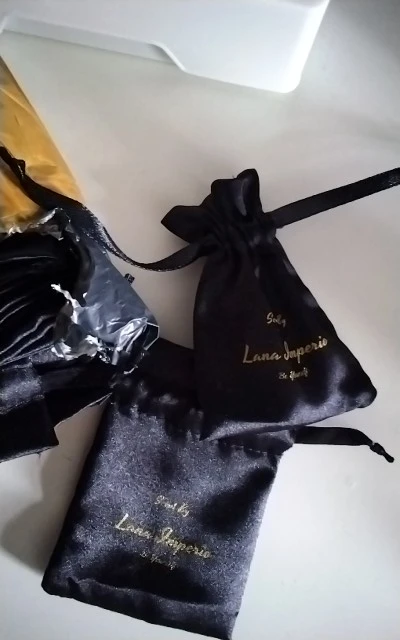 50PCS Satin Drawstring Pouch High Grade Champagne Silk Jewelry Bag Necklace Bead Storage Gift Wrapping Sachet Soft Print Logo