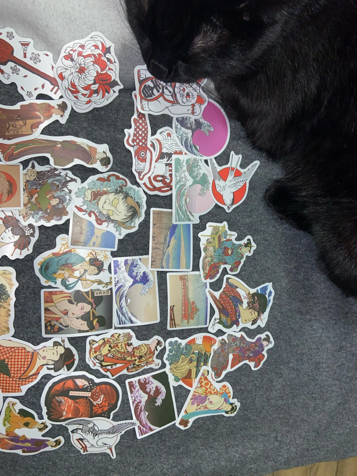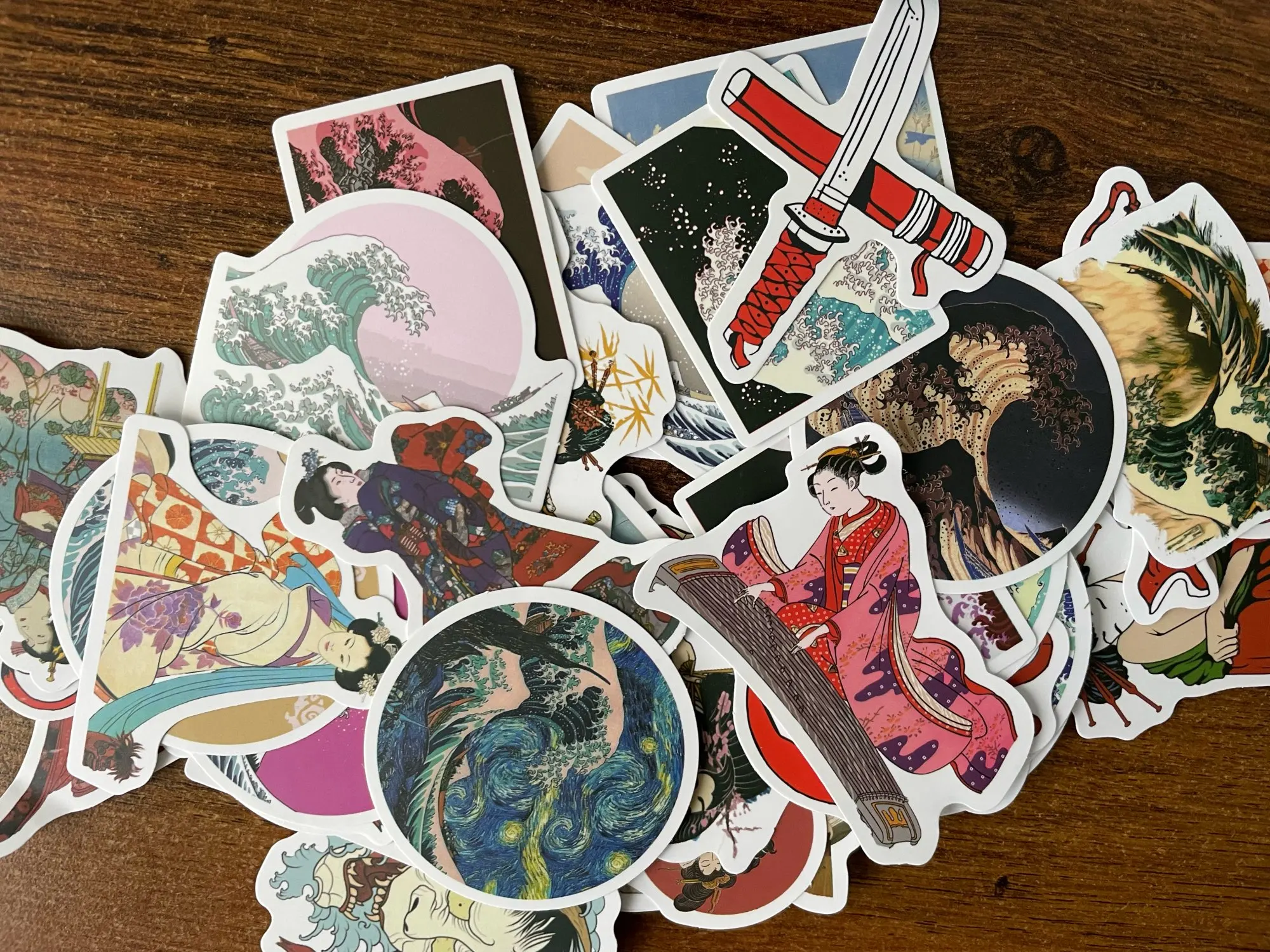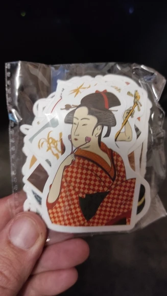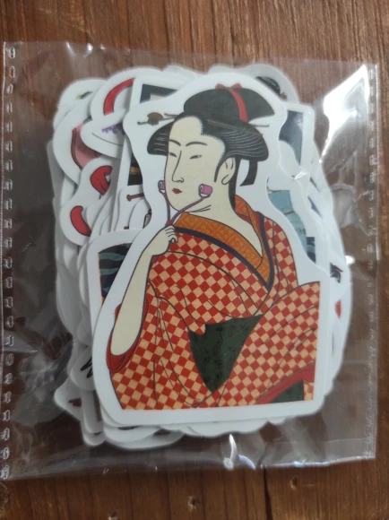 The package contains a good mix of stickers. There is a lot of Great Wave inspired art, but also some landscapes and pictures of beautiful women.