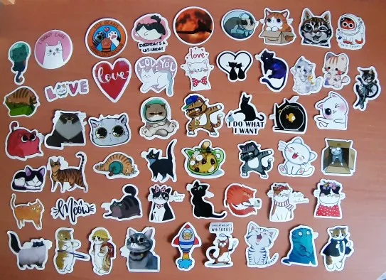 54 Pcs Cute Cats Animal Graffiti Sticker Mixed Style Toys For Suitcase Laptop Bike Luggage Car Scooter Skateboard Sticker
