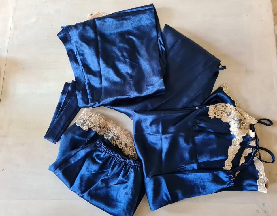 5PC Silk Robe Sleep Suit Womens Lace Satin Pajamas Gown Set V-Neck Cami Nighties Wear Pijama Home Nightwear Spring Nightdress
