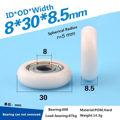 5pcs 8x30x8.5mm 608ZZ bearing delrin POM coated Roller R5mm round type pulley wheel for track guide wheel rolling pulley
