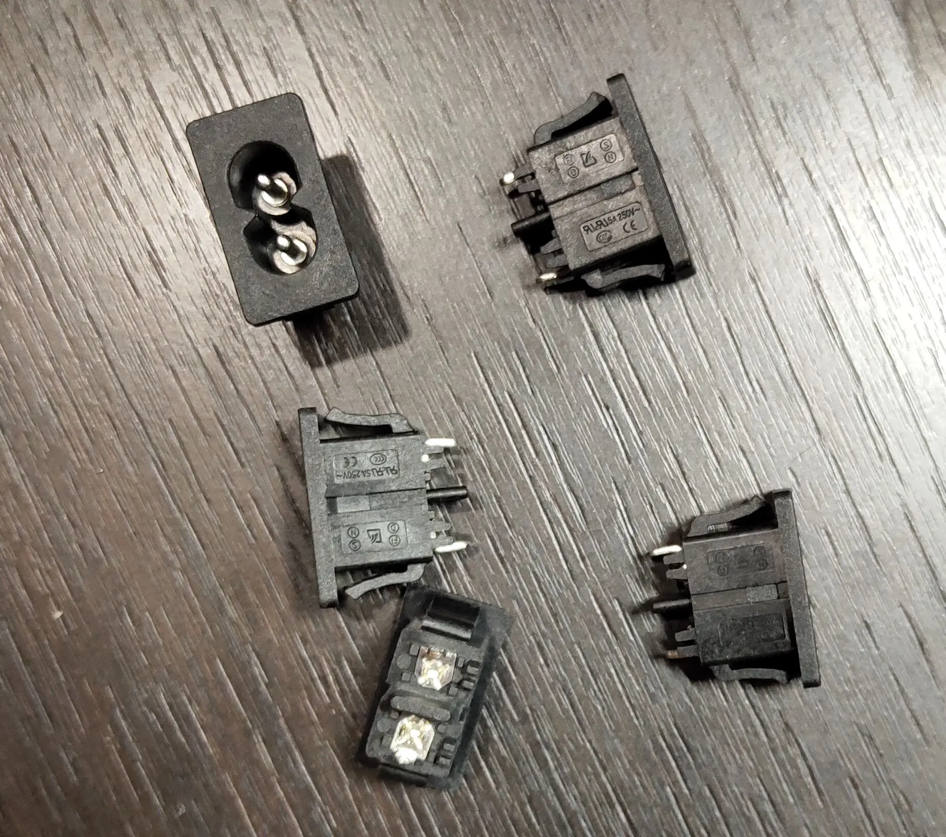 5Pcs IEC320 C8 Black 2 Terminal Power Plug Inlet Socket AC 250V 2.5A