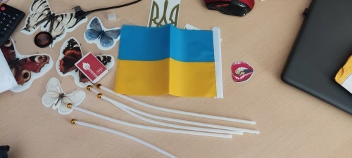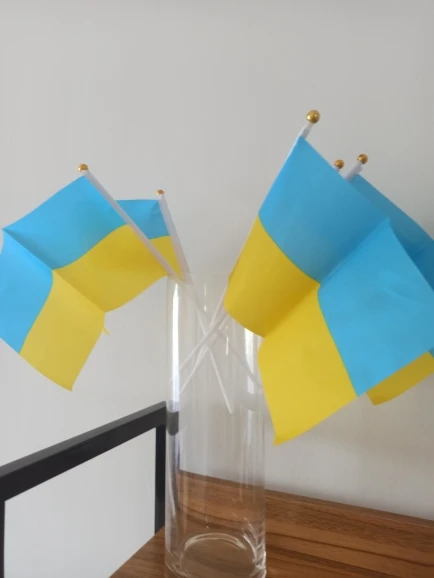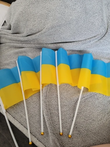 5pcs Ukraine Stick Flag, Ukraine 14*21CM HandHeld Mini Flag With White Pole - Vivid Color and Fade Resistant