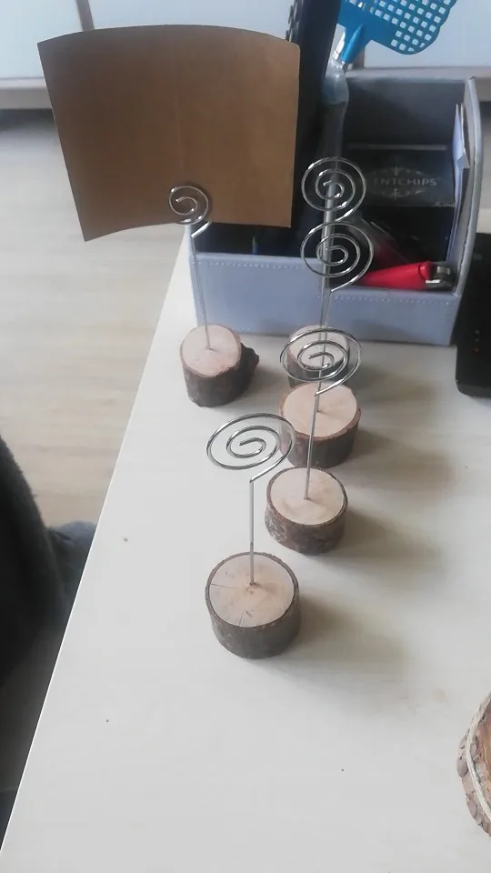5PCS Wedding Wooden Stump Name Place Card Stand Rack Table Number Card Clip Wood Art Craft Decoration Home Party Supplies