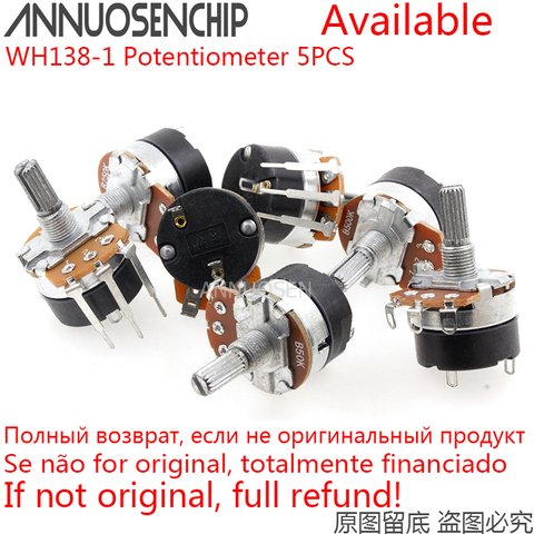 5PCS WH138-1 B5K B10K B20K B50K B100K BAdjustable Resistance Speed Regulator With Switch Potentiometer WH138 5K 10K 20K 50K 100K
