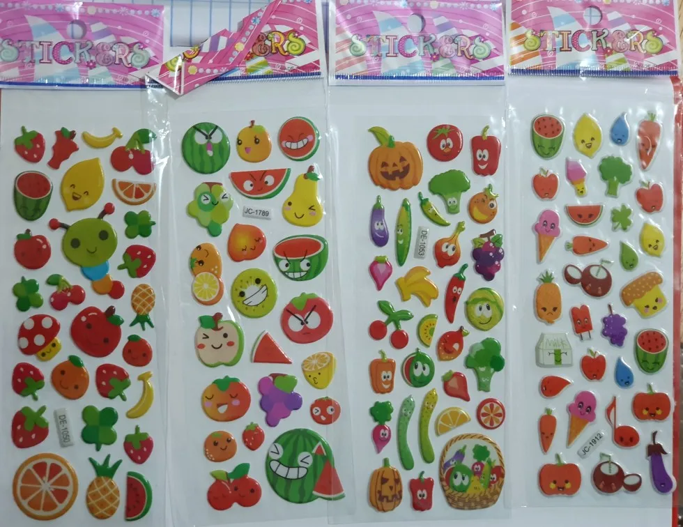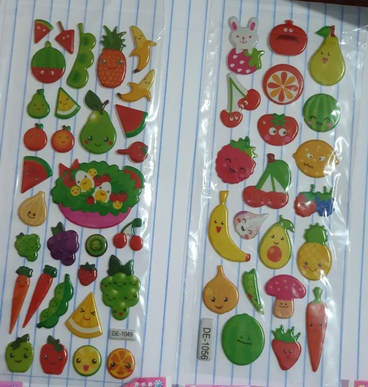 6 Sheets Kids Stickers 3D Puffy Bulk Stickers for Girl Boy Birthday Gift Scrapbooking Fruit Vegetable Cartoon Stickers Toys GYH