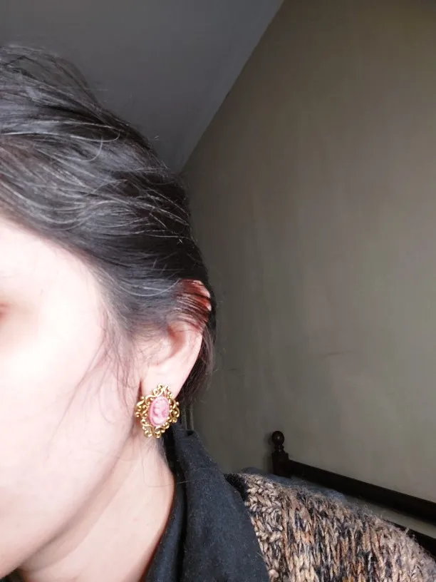 6 Style Vintage Look Antique Lady Queen Relief Oval Acrylic Earring Push Back Stud Fashion Jewelry for Women Cameo Earrings