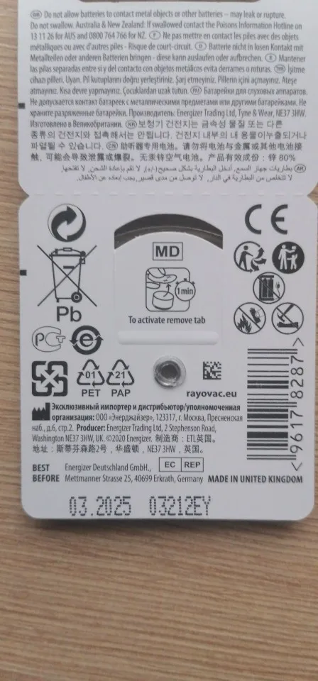 60 PCS Free Shipping Zinc Air Hearing Aid Battery 10/A10/PR536. Rayovac Extra Performance Hearing Aid Batteries 10 10A
