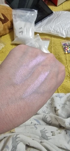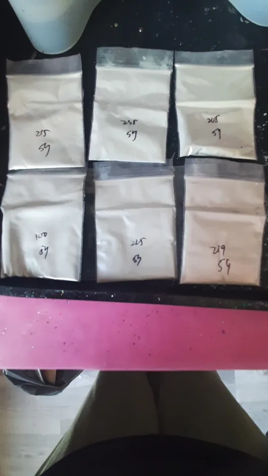 Beautiful pearlescent powder, very fine powder, I applied to no wipe top coat of gel and it gives a glass effect, I used over black but you can put them over any colour. The first photo shows the powder number 225 over black no wipe top coat, over black tacky layer which gives more of a pearlescent effect and over white, came in bags, order dispatched and received quickly, well packaged, seller recommend, thank you