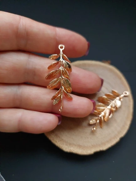 6PCS 24K Gold Color Plated Brass Tree Leaf Leaves Charms Pendants Diy Jewelry Findings Earrings Accessories Wholesale